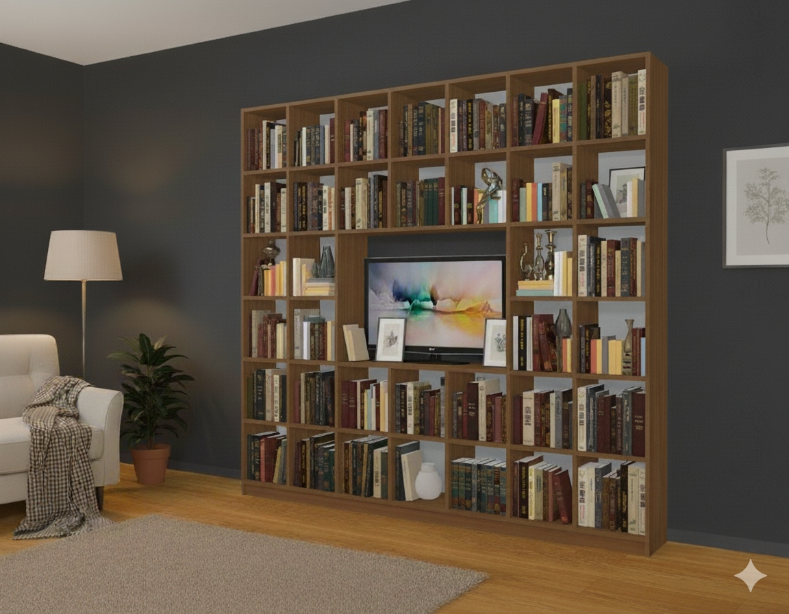 Шкаф для книг с нишей для телевизора в гостиную — на заказ по своим размерам