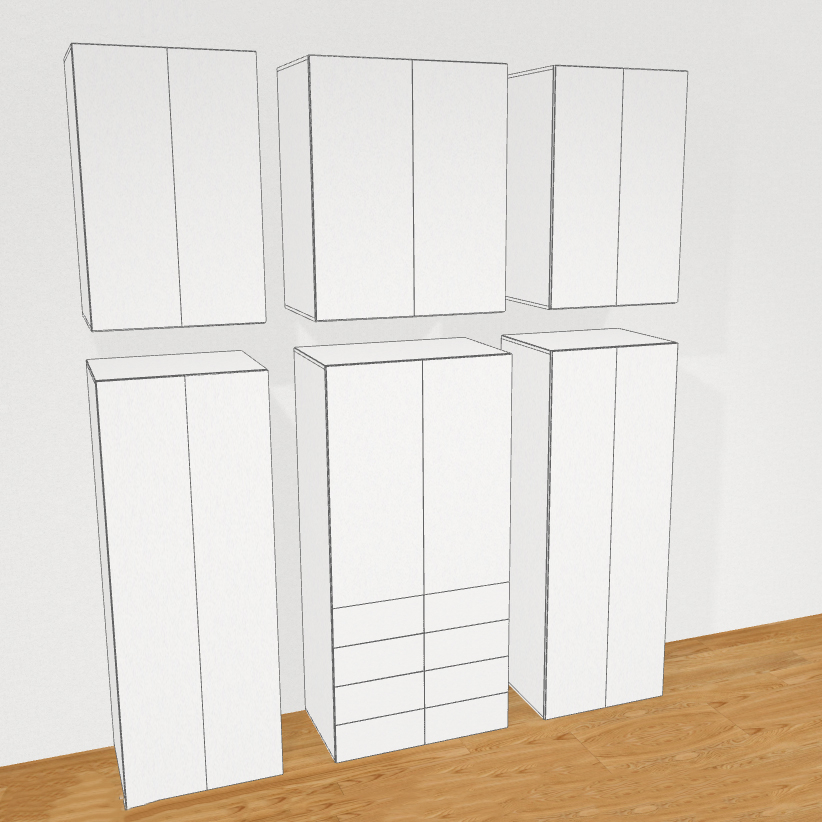 Обычно мы рекомендуем собирать шкаф в горизонтальном положении, а затем поднимать его вертикально. Для шкафов под потолок это часто невозможно по нескольким причинам.