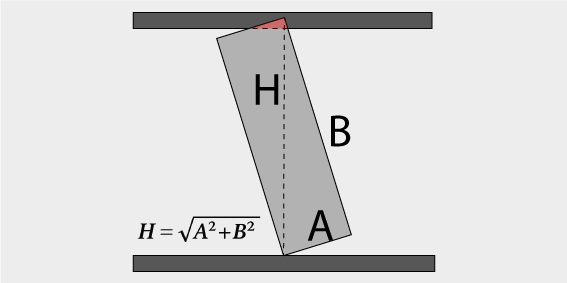 - Диагональ. Диагональ собранного шкафа должна быть меньше расстояния от пола до потолка. Иначе его физически невозможно поставить вертикально. Этот момент мы показываем на схеме рядом вместе с формулой. Чтобы было проще ориентироваться. Для шкафа высотой 2500мм и глубиной 600 мм нужен запас сверху 71 мм.