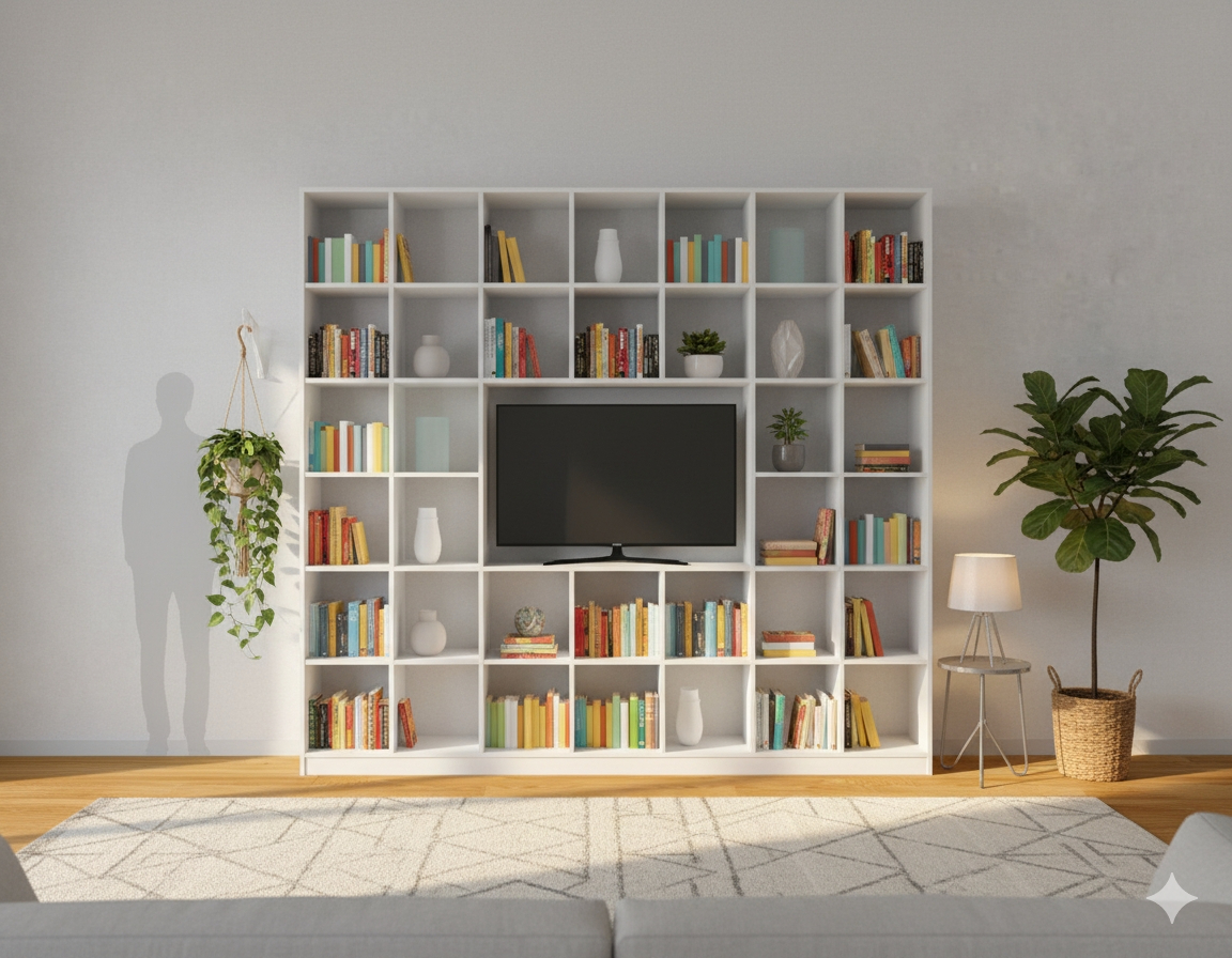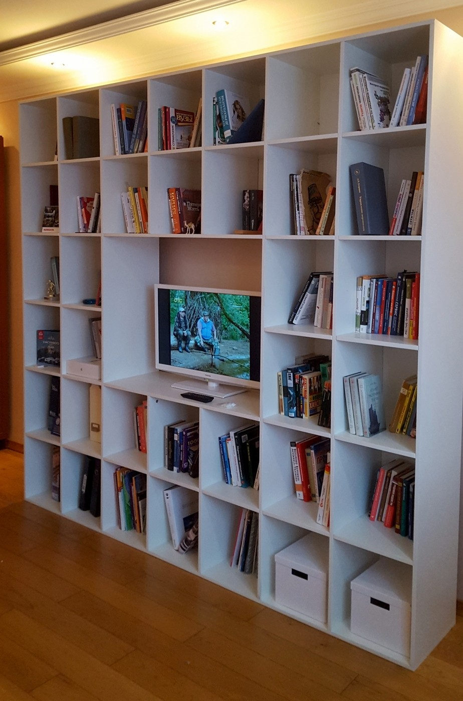 Сделайте пространство дома удобным и красивым с этим белым открытым стеллажом на заказ по вашим размерам!