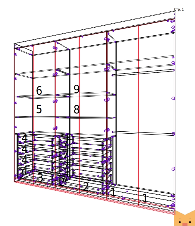 Но если вы увидели такую ошибку, то на PDF схеме зелёным цветом будет выделен крепёж, который вышел за габариты детали. В этом случае детали могут остаться без крепежа, и вам нужно решить, важно ли это для вас и сможете ли вы при сборке усовершенствовать конструкцию: например, досверлить отверстия или собрать изделие на уголки.