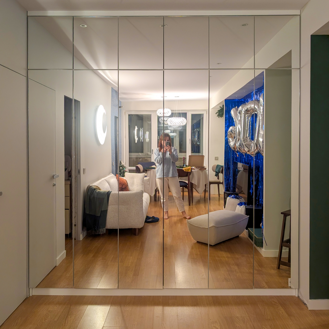 Шкаф от пола до потолка с зеркальными фасадами - интересное и функциональное решение для самых разных интерьеров.
