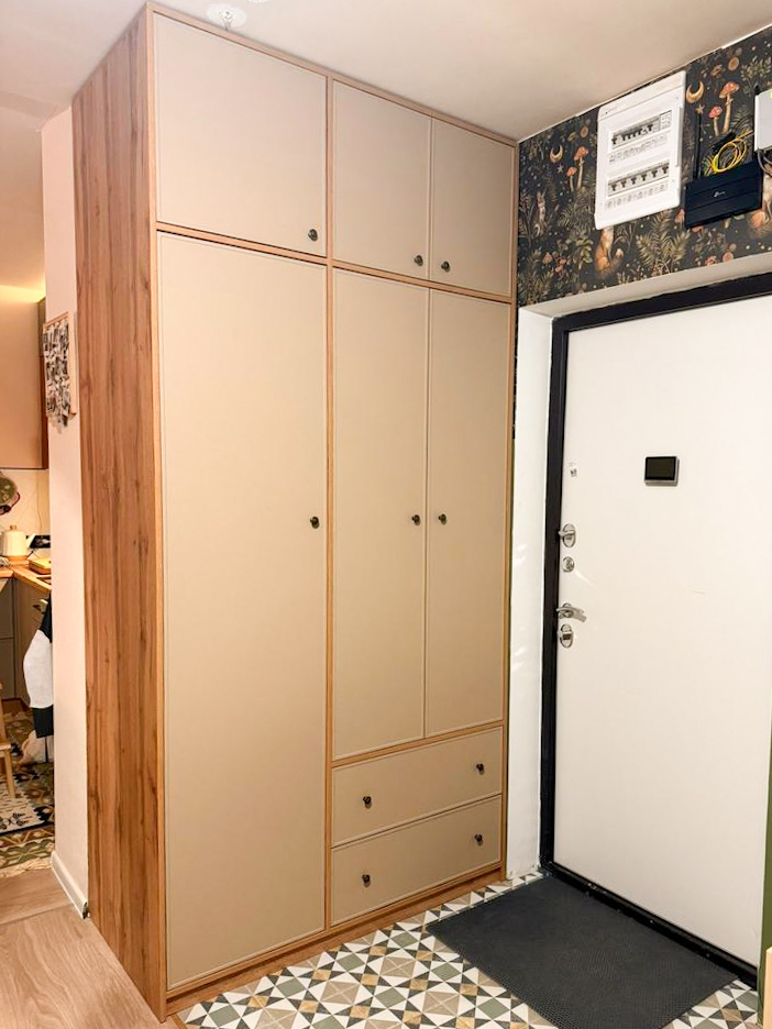 Клиентка создала шкаф, который идеально вписался в прихожую. Каждая деталь в нём продумана для комфортного ежедневного использования. А эстетические решения: вкладные дверцы, аккуратная фрезеровка и контрастный корпус - делают интерьер цельным и «законченным».