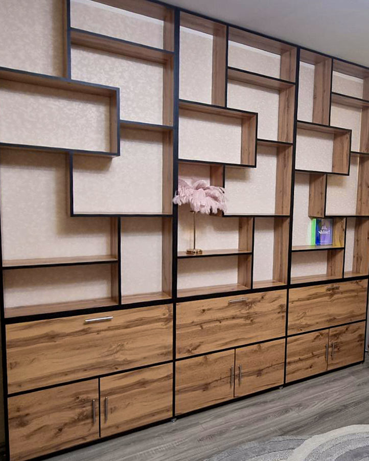 Размеры, цвет, количество секций и расположение полок можно изменить в онлайн-конфигураторе мебели прямо на этой странице.