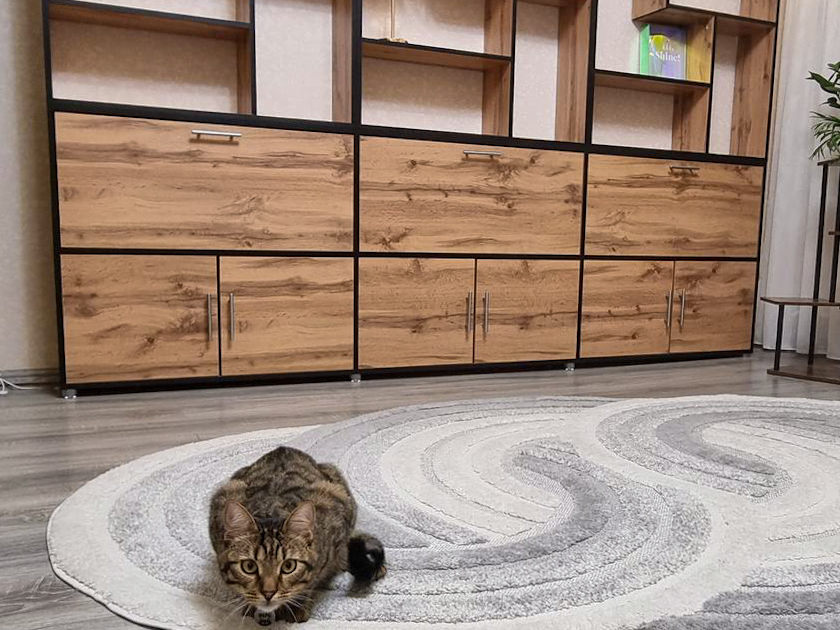 Задача - дополнить конструкцию, чтобы получился полноценный стеллаж во всю стену с удобным хранением. Получилась тумба с закрытыми ящиками. Оттенки изделий точно совпали, поэтому конструкция смотрится как единое целое.
