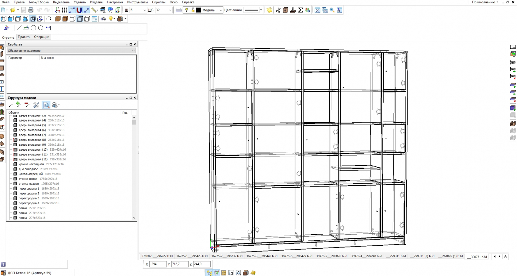 Наш онлайн-конструктор формирует корректные модели для программы Базис Мебельщик в автоматическом режиме. В файлах сохраняются размеры деталей, присадка отверстий, размеры и положение кромки, фурнитура и все конструктивные параметры. Они читаются большинством мебельных цехов без дополнительной подготовки и согласований.